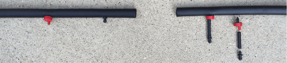 Professional gardeners often leave unused emitters in place, preferring the certainty of their ongoing drips to the risk of goof plug gushers. Both options on the left in the above photo are problematic. Smart plugs handily prevent unused emitters’ inordinate wastes and goof plugs’ insidious leaks. Shown on the right, the emitter remains in place corked by a short piece of spaghetti with a goof plug.