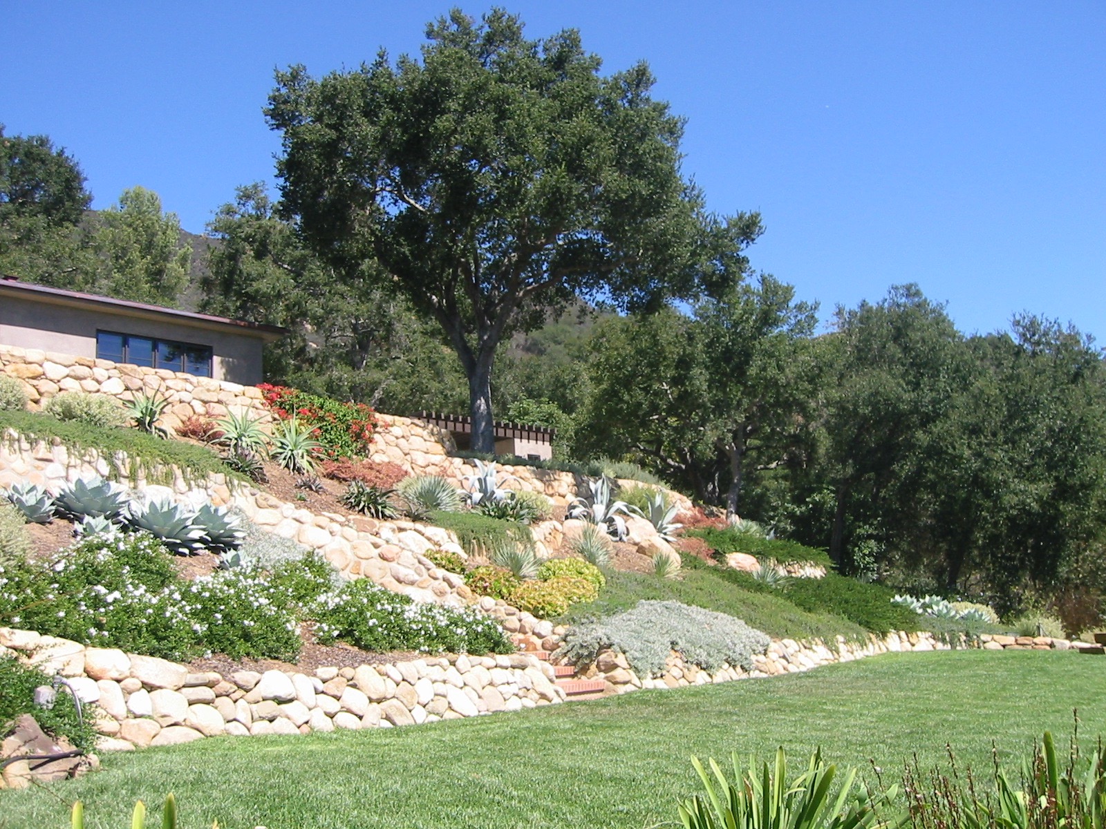 Half a century ago, enterprising owners terraced our hillside. They built a home on level land with brick stairs down to a 42′ x 140′ plane cut into the slope for lawn. Fast forward to 2014 – year 3 of the drought and year 1 of our sustainability transformation – and this turf became a prime target.