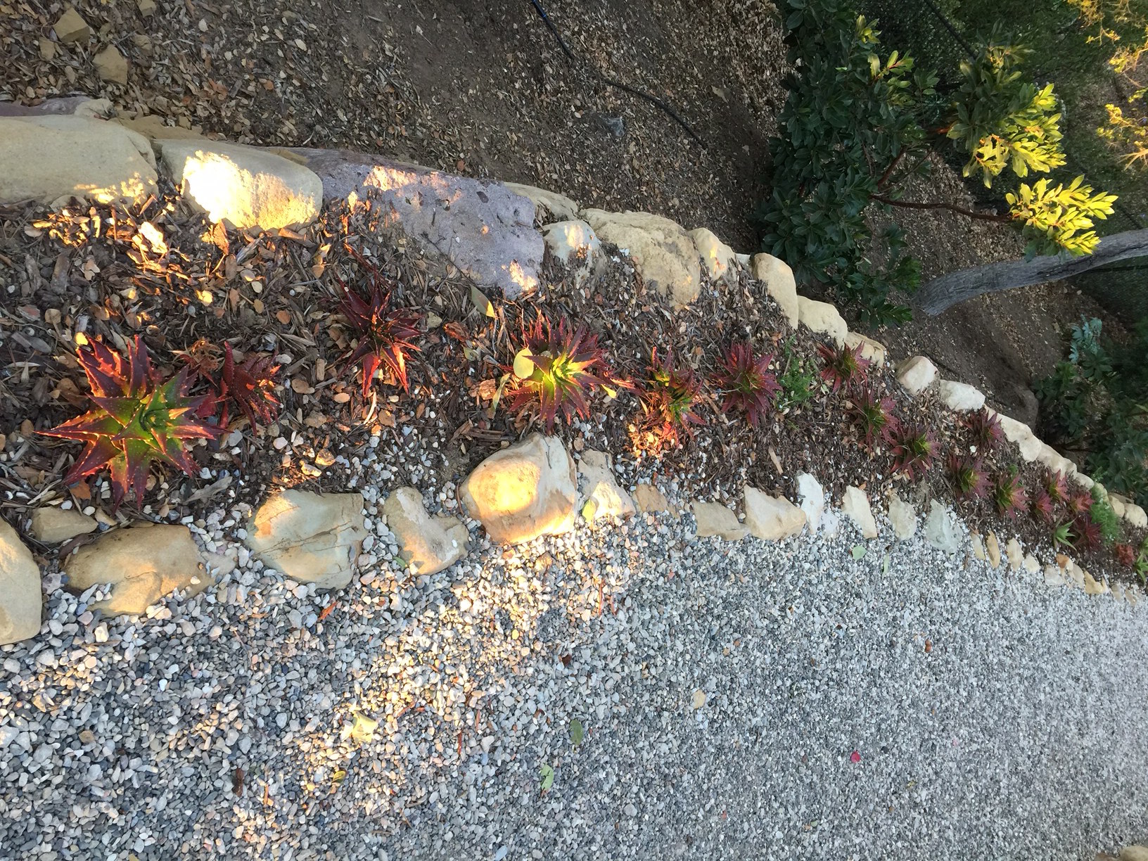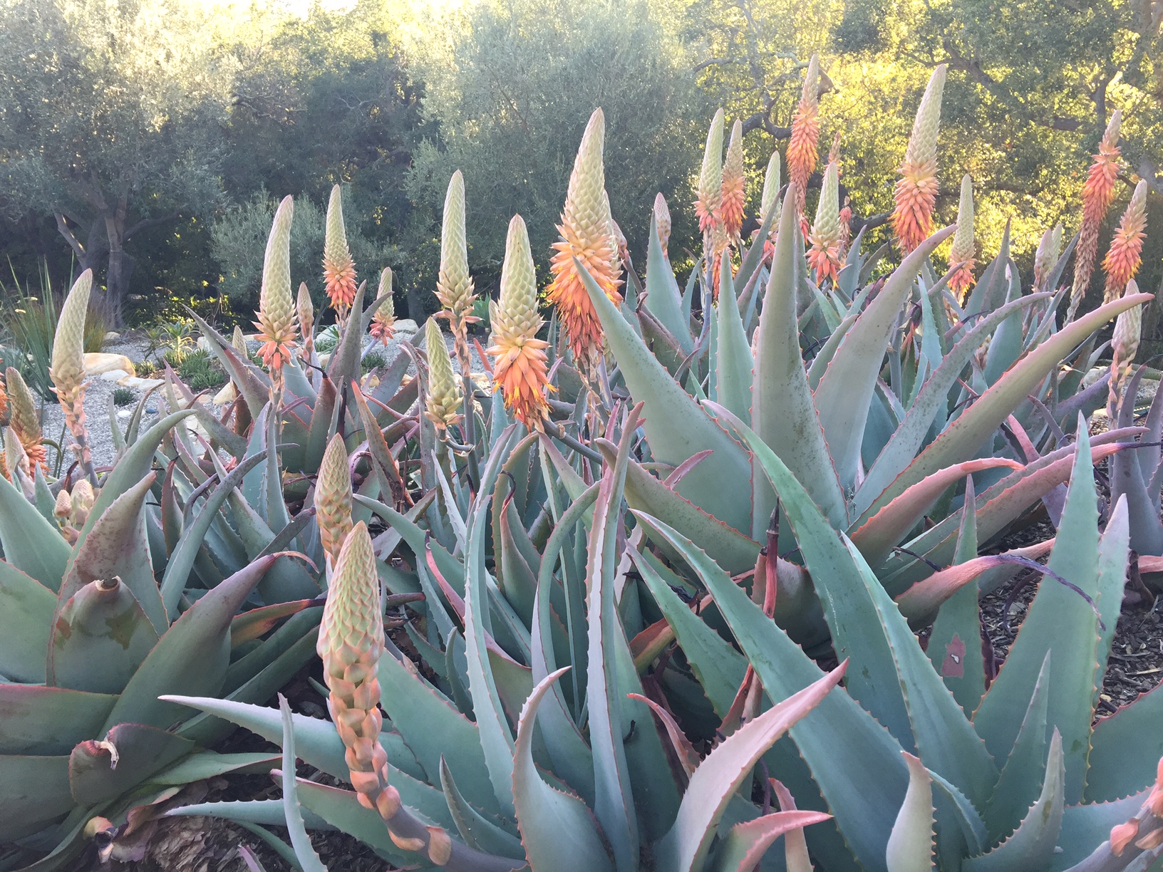 We planted 7 shown on the left 4 years ago and quickly doubled the count with their pups. Last year we harvested 26 more new specimens to populate the area we converted from grass shown in the center. The only downside (besides aloe mites) is snails can blemish their leaves.
